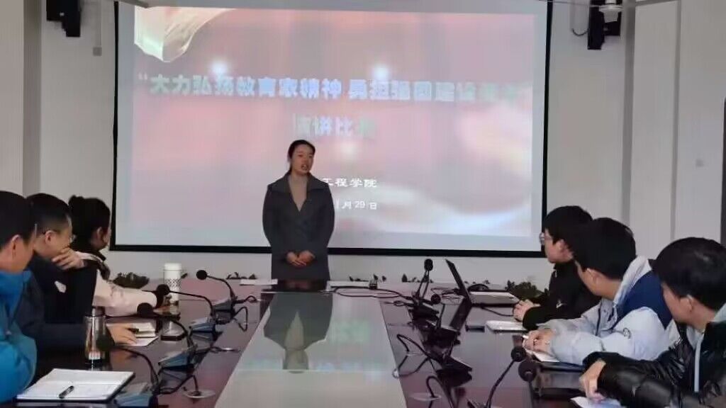 为大力弘扬“心有大我、言为士则、启智润心、勤学笃行、乐教爱生、胸怀天下”的教育家精神,根据学校工会安排部署,成人在线观看视频于11月29日在机电楼二楼会议室举办“大力弘扬教育家精神 勇担强国建设使命”主题演讲比赛。学院党总支副书记(主持工作)丁迎春等领导老师担任评委。