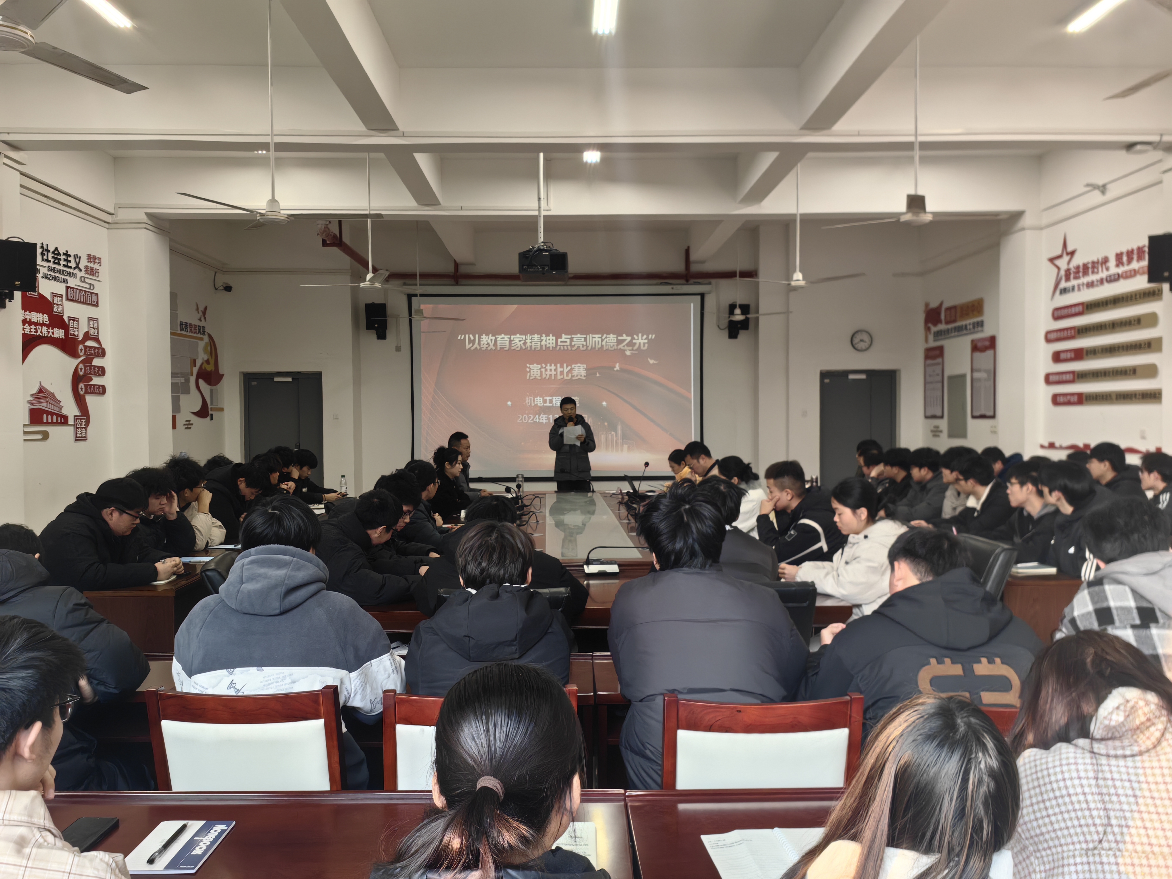 为深入贯彻党的二十大和二十届二中、三中全会精神,积极响应教育部号召,大力弘扬教育家精神,进一步加强师德师风建设,成人在线观看视频于12月4日下午14:00在机电楼二楼会议室举办了“以教育家精神点亮师德之光”主题演讲比赛。此次比赛旨在通过教师的亲身讲述,展现新时代教育工作者的高尚情操和卓越风采,进一步激发学院全体教职工的教育热情和使命感。