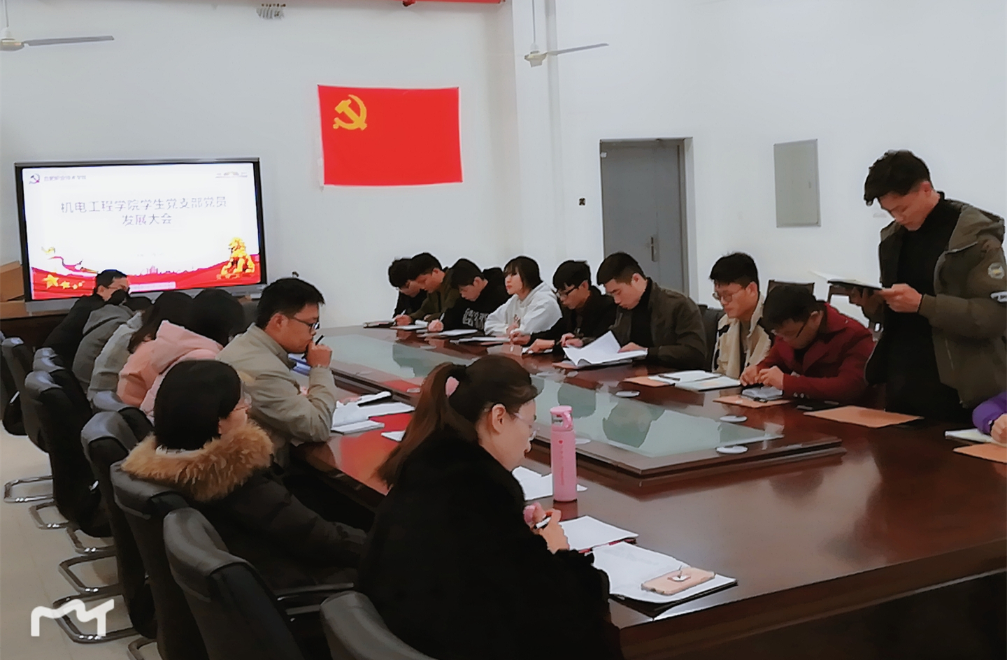 12月5日下午,成人在线观看视频学生党员发展及转正大会在机电工程楼二楼会议室召开。学生党支部全体党员、培养联系人、4名预备党员及11名发展对象参加了会议。会议由学生党支部书记朱何萍主持。