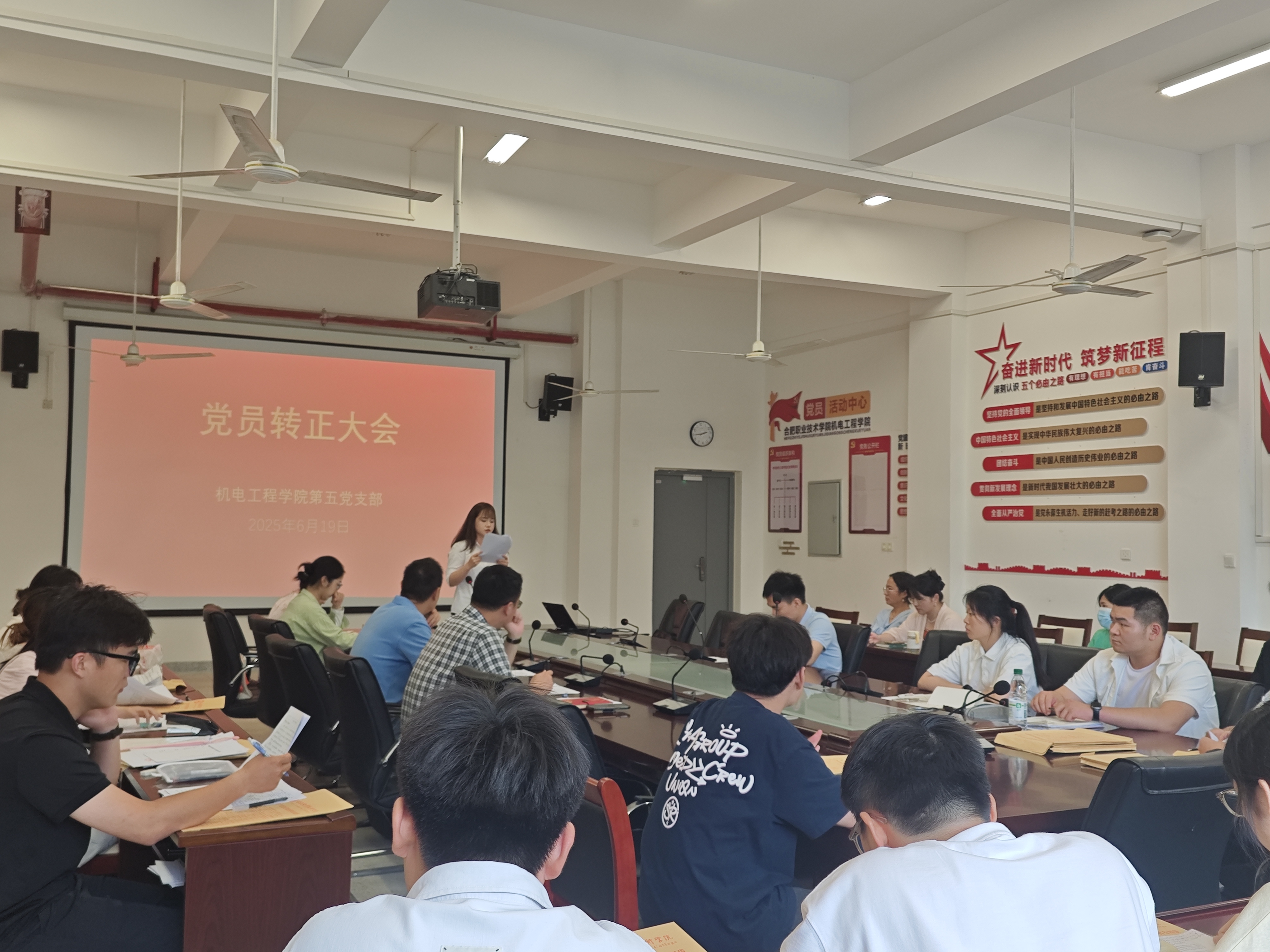 6月19日下午,成人在线观看视频第五党支部在机电楼二楼会议室召开预备党员转正大会。此次会议由学院第五党支部书记张开主持,支部全体党员同志及各入党介绍人参加。