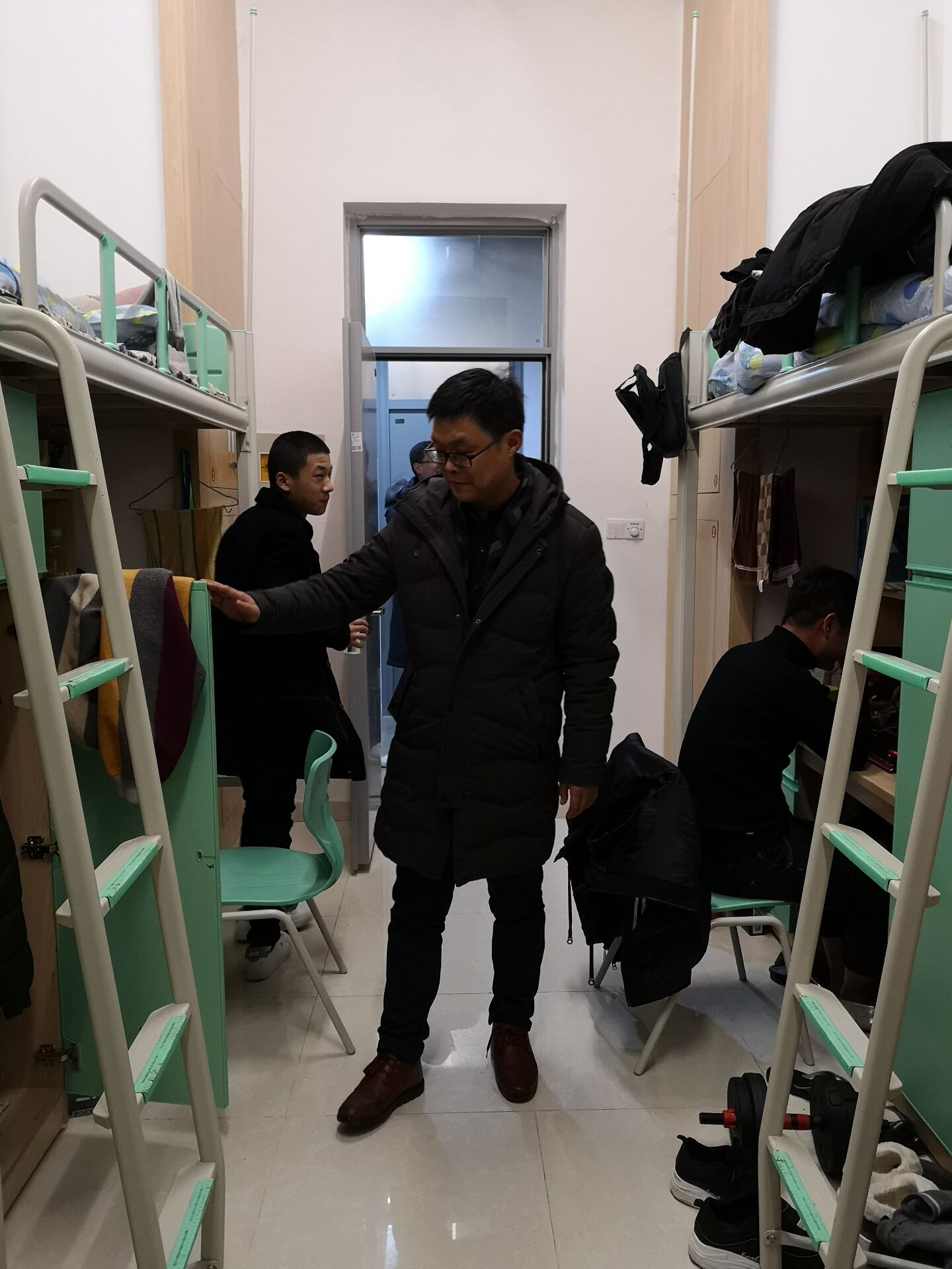 11日晚,王克勇书记亲率所有班主任来到成人在线观看视频所在宿舍楼层,一层层的看、一间间的查、一个个的问,将宿舍“三问三查”工作做足做实。王克勇书记首先代表成人在线观看视频向全体同学送去新年问候,希望同学们在接下来的考试中取得好成绩,随后向那些愿意放弃假期留校参加大赛培训的同学送去真挚慰问和真心祝福,最后也对本学期宿舍评分较低的宿舍、出现过违规的宿舍进行了“问责”,对他们现场进行了批评和教育。