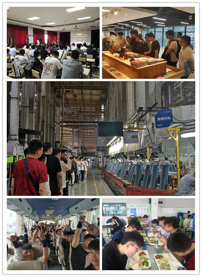 与优秀的学长交流心得,同学们一起展望未来,畅谈发展;对话工厂领导,同学们了解海尔,感受海尔文化;素质拓展游戏,同学们活动筋骨、群策群力、通力合作,知道了什么是“坚持、信任、合作、执行力”;参观员工宿舍,同学们体验了一名职场员工的衣食住行情况。