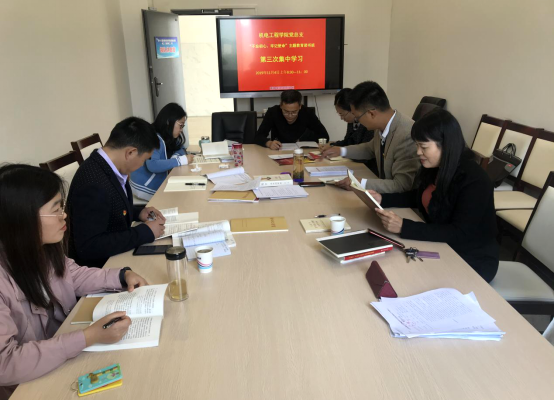11月4日上午,成人在线观看视频党总支在机电楼201会议室举行“不忘初心、牢记使命”主题教育第三次专题读书班。在前期个人自学、读原著、学原文、悟原理的基础上,对照《中国共产党章程》,《关于新形势下党内政治生活的若干准则》《中国共产党纪律处分条例》进行自我检查。该院党总支委员、教工党支部委员、学生党支部全体党员及校主题教育第七指导组成员陈辛琦参加学习活动。学习班由该院党总支副书记(主持工作)王克勇主持。