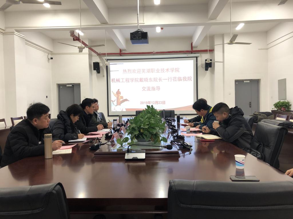 12月23日下午,芜湖职业技术学院机械工程学院院长戴晓东及相关专业课老师来我院交流学习,就人才培养、专业建设和学院发展等问题进行讨论。成人在线观看视频副院长胡木林(主持工作)主持会议,副院长孙新梅、机械教研室主任徐滨、模具专业负责人陈森林出席本次学术交流会。