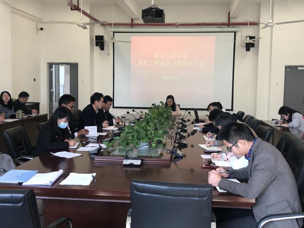 11月11日下午,成人在线观看视频在机电楼二楼会议室召开全体教职工大会暨十一月份党员理论学习会议。学院全体教职工参会,会议由该院党总支副书记(主持工作)王克勇主持。