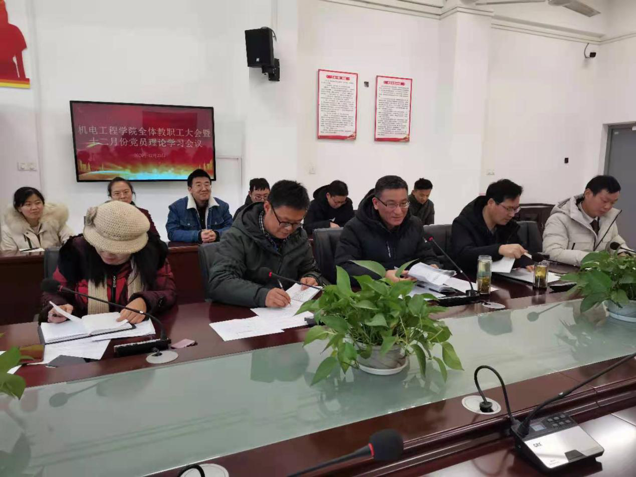 12月23日下午,成人在线观看视频在机电楼二楼会议室召开全体教职工大会暨十二月份党员理论学习会议。副校长孙兴林及成人在线观看视频全体教职工参加会议,会议由该院党总支副书记(主持工作)王克勇主持。