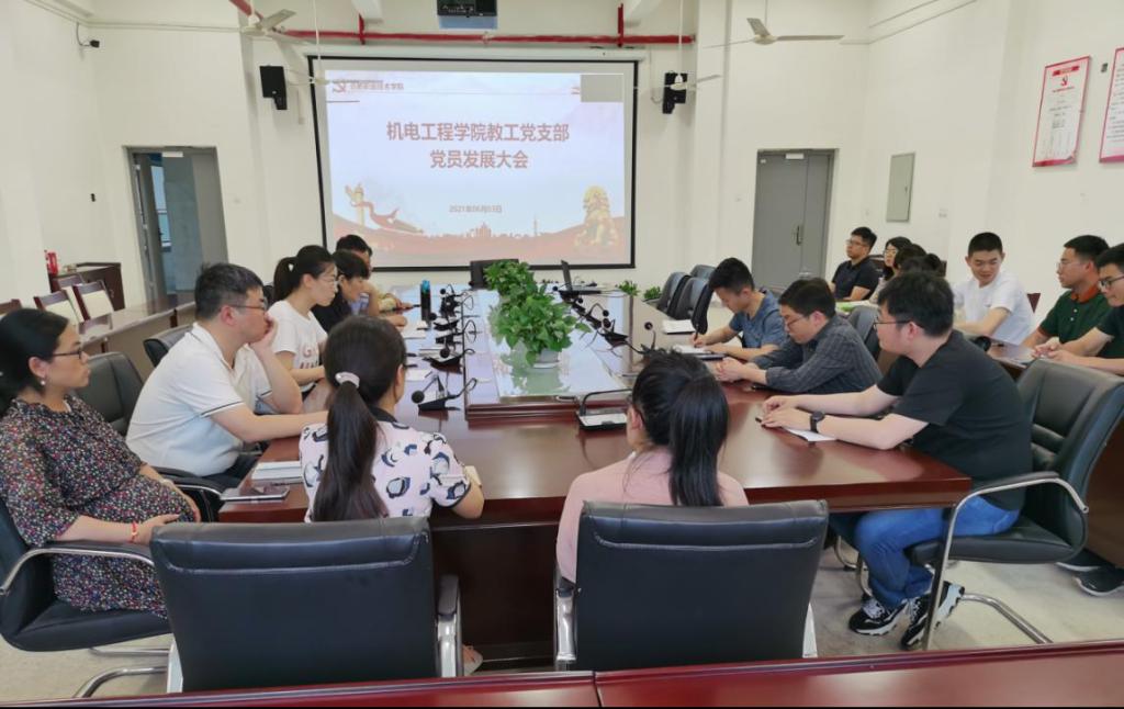 6月3日下午,我院教工党支部在机电楼二楼会议室召开党员发展大会。会议由支部书记孙新梅主持,学院党总支副书记丁迎春参加大会。