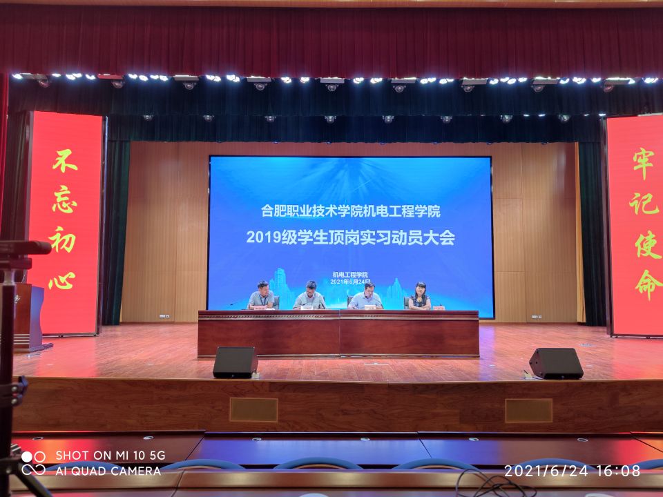 6月24日下午,成人在线观看视频在大学生活动中心召开2019级学生顶岗实习动员大会,会议采用线下与线上直播方式同步进行。学院党政领导班子成员、2019级学生辅导员、顶岗实习指导教师及部分学生代表现场参加会议,会议由成人在线观看视频副院长(主持工作)胡木林主持。