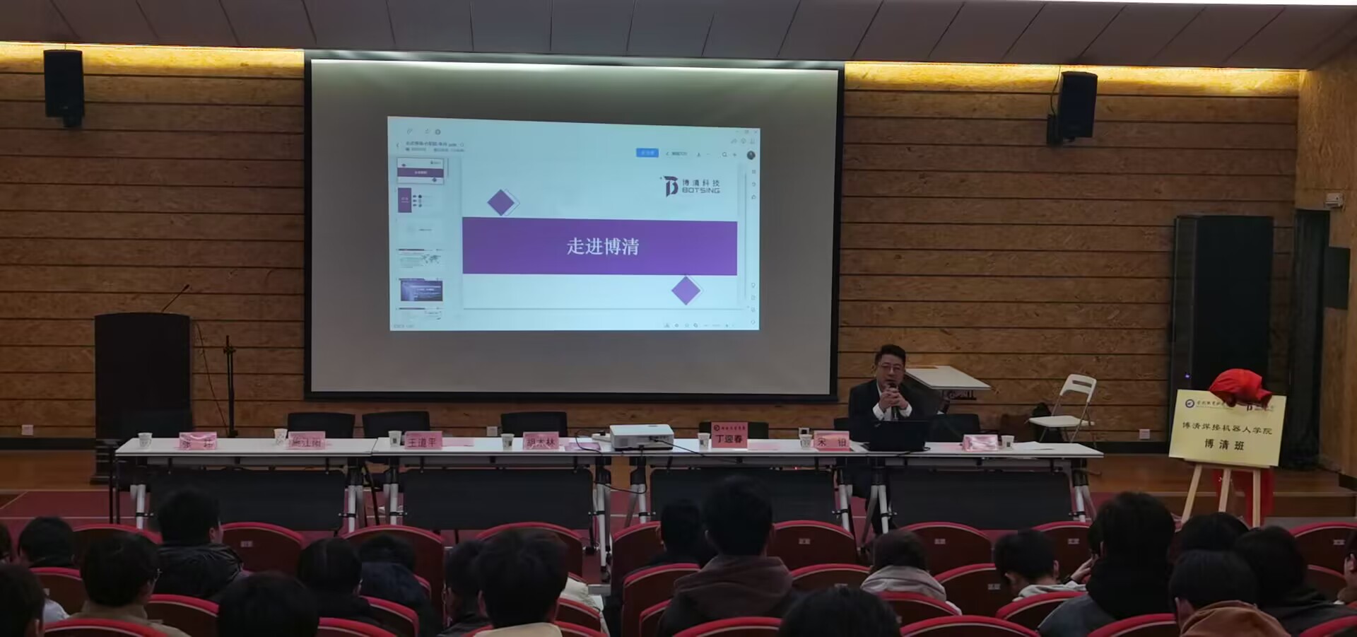 博清科技人力资源总监施江阳作为企业代表发言,他带着同学们更深入地了解博清,走进企业。最后由博清科技企业导师为博清班同学们上开班第一课“走进博清”。
