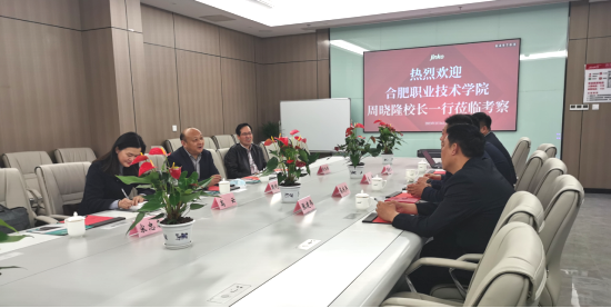 安徽晶科公共关系总监蔡庆兵对公司人才岗位需求、人才培养模式以及校企合作成果进行了介绍说明,他强调校企合作是实现双方优势互补、互利共赢的必经之路。希望双方以此次校企联合开发横向课题为契机,勠力打造有特色、共生共赢的校企合作典范。