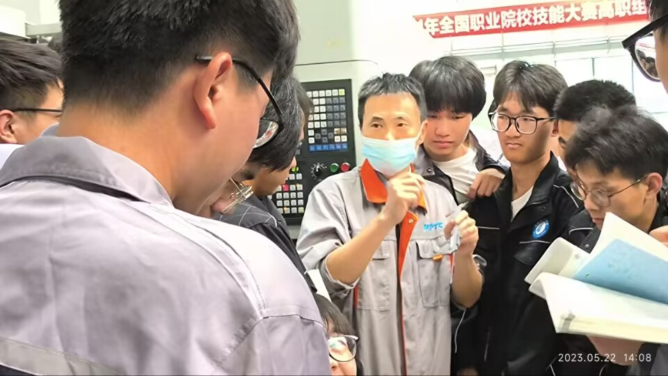 5月22日下午,成人在线观看视频在机电楼一楼数控加工中心组织开展了2023年职教活动周之“示范课”公开教学活动,本次教学活动主讲教师为周敬勇教授,教学内容为《数控加工技术》课程的数控加工和编程实训技能训练,成人在线观看视频所有无课老师和21机电3班全体同学参加了此次“示范课”教学活动。