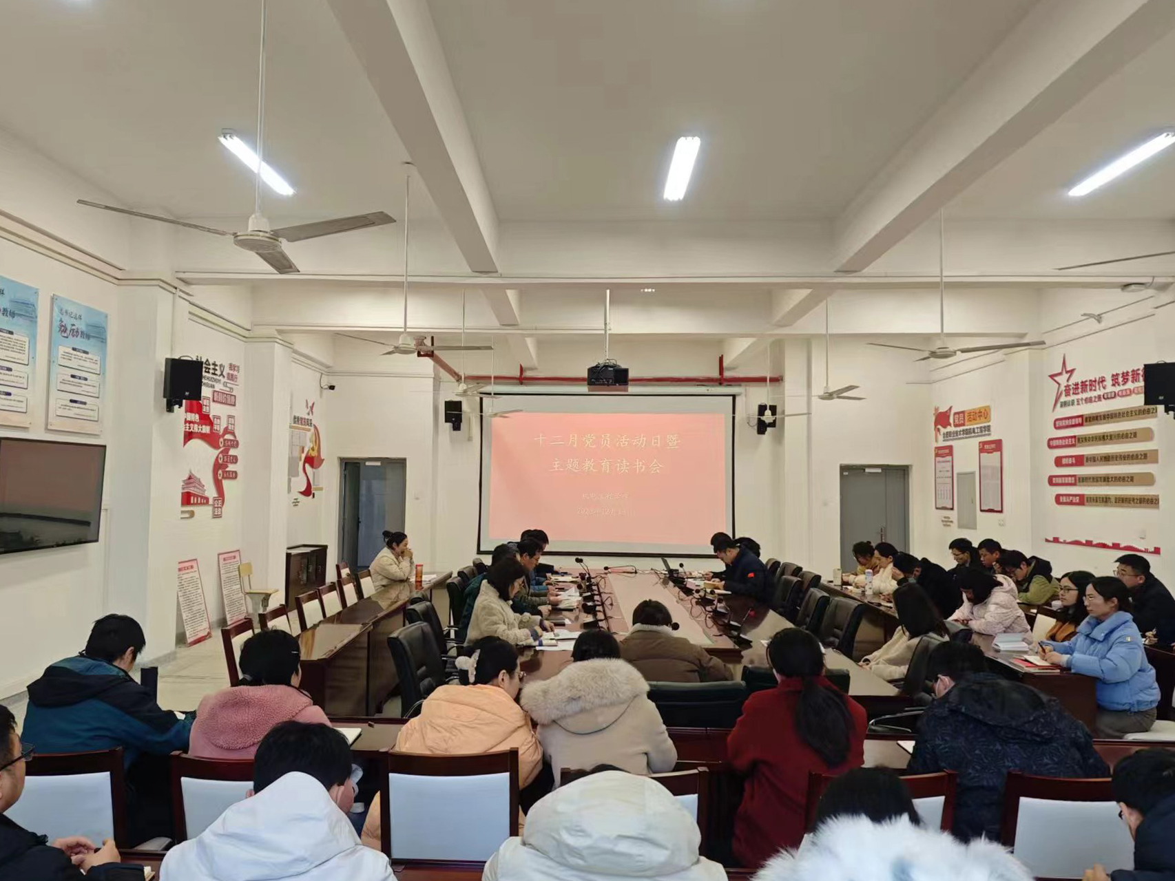 12月13日下午,成人在线观看视频在机电楼二楼会议室组织召开十二月份党员活动日暨主题教育第三次读书会,学院全体教职工参加,会议由该院党总支副书记(主持工作)丁迎春主持。