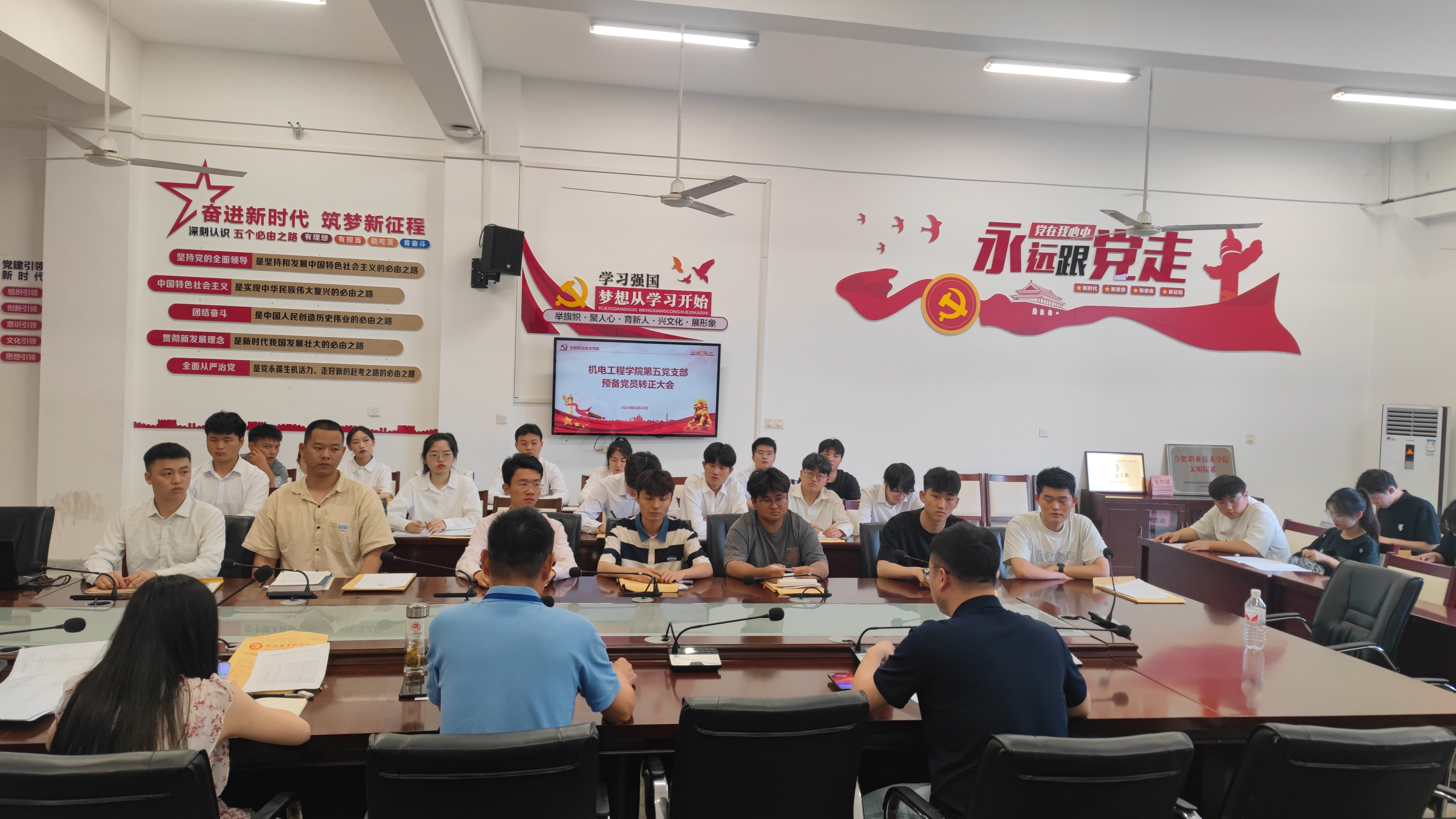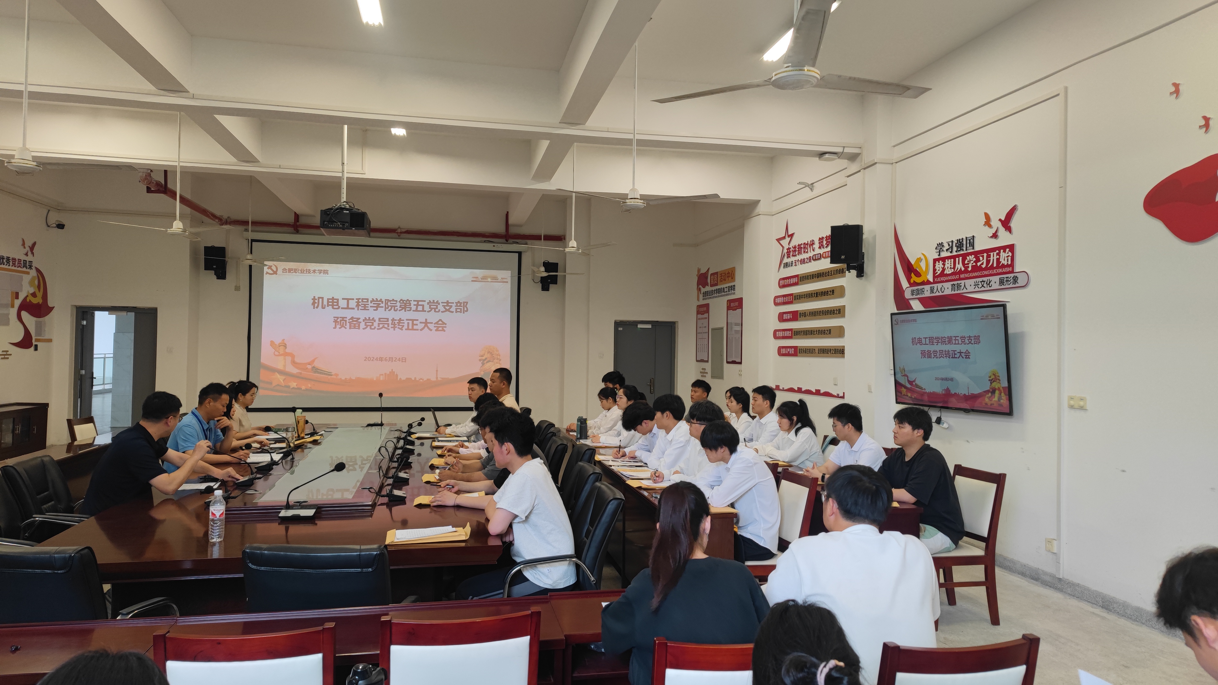 2024年6月24日上午,成人在线观看视频第五党支部在机电楼二楼会议室隆重召开预备党员转正大会。此次会议由学院第五党支部书记张开主持,第五党支部全体党员及各入党介绍人参加。