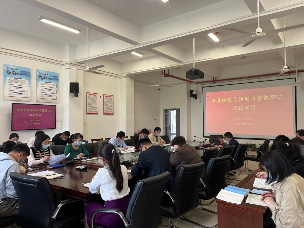 为深入学习贯彻习近平总书记重要讲话和全国两会精神,4月20日下午,成人在线观看视频在机电楼203会议室开展四月份党员活动日暨教职工理论学习活动,此次活动以线下线上相结合的形式开展,学院全体教师职工参加,会议由该院党总支副书记丁迎春主持。