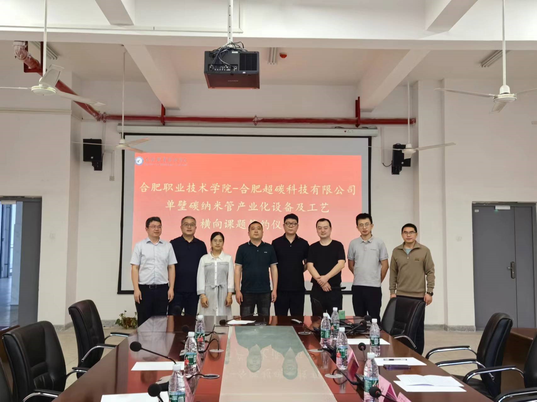 5月27日下午,合肥职业技术学院-合肥超碳科技有限公司单壁碳纳米管产业化设备及工艺横向课题签约仪式在成人在线观看视频2楼会议室举行。合肥超碳科技有限公司法人代表王储携团队7人应邀参加,成人在线观看视频崔霞博士团队和相关人员参加了签约仪式。