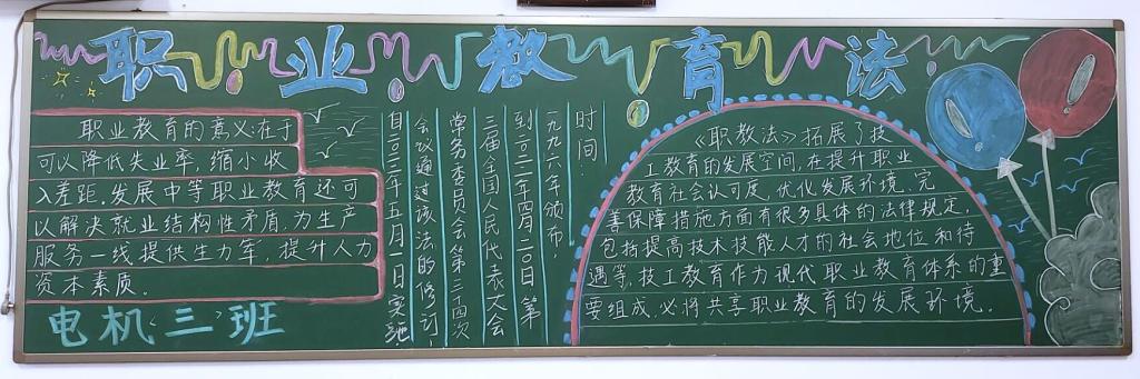 为了丰富校园文化生活,大力弘扬工匠精神,提高学生的文化素养,深入学习《职业教育法》的内容和精神。2022年5月29日,成人在线观看视频开展了以《职业教育法》为主题的黑板报评比活动。