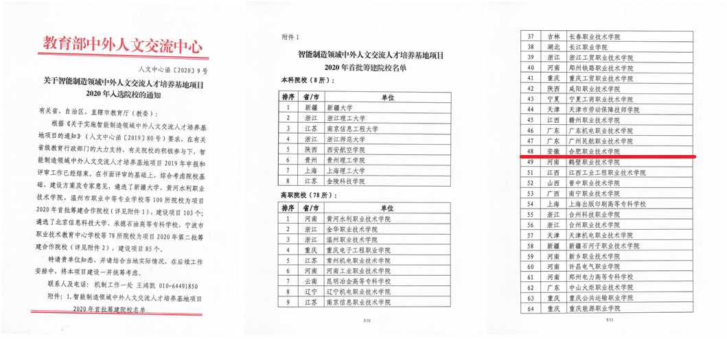 根据教育部中外人文交流中心发布的《关于智能制造领域中外人文交流人才培养基地项目2020年入选院校的通知》(人文中心函〔2019〕80号),全国遴选了新疆大学等8所本科院校、黄河水利职业技术学院等78高职院校和温州市职业中等专业学校等14所中职学校为智能制造领域中外人文交流人才培养基地项目2020年首批筹建合作院校。我校作为安徽省唯一一所高职院校入选。为深入推进项目建设,早日建成具有引领示范作用的智能制造领域的中外人文交流人才培养平台。4月23日上午,成人在线观看视频组织召开了教育部智能制造领域中外人文交流人才培养项目交流研讨会。教育部智能制造领域的中外人文交流人才基地项目负责人,亚龙智能装备集团股份有限公司副总裁陈少明、亚龙智能装备集团股份有限公司安徽省营销总监闫从飞等一行5人,副校长周晓隆教授及教务处、发规处、科技处、外事办、成人在线观看视频负责人等参加会议。会议由成人在线观看视频副院长(主持工作)胡木林主持。