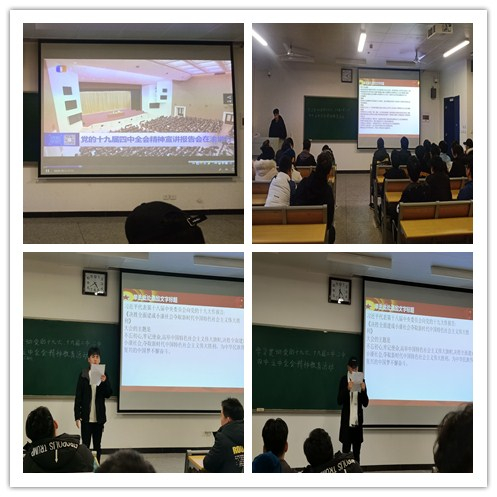 活动主要分为三个流程,首先由团支书为大家介绍了党的十九大开幕式以及相关的会议议程。随后,全体同学观看了党的十九届四中全会精神宣讲报告视频。随后,大家一起聆听了《中国人的宣言》这首歌曲,这首歌包含了24字核心价值观,很有教育意义。