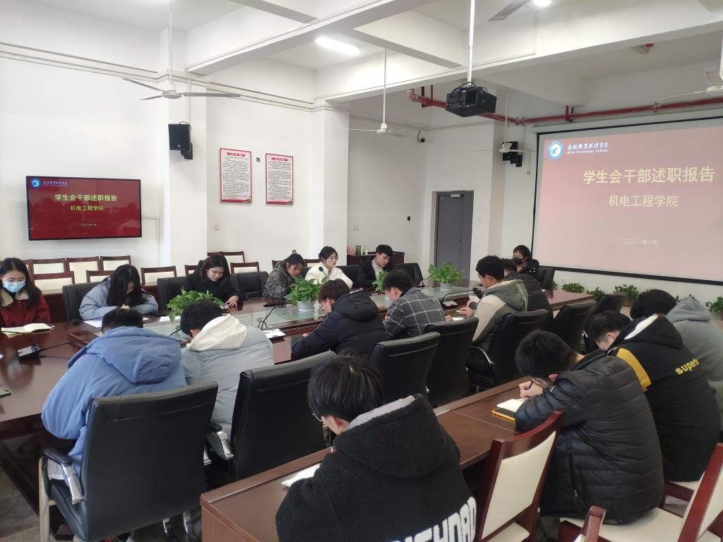 1月10日下午,成人在线观看视频在机电楼二楼会议室召开2020年度学生干部述职报告会。学生会主席团、各部门主要负责人以及学生代表参加会议。会议由团总支书记朱何萍老师主持。