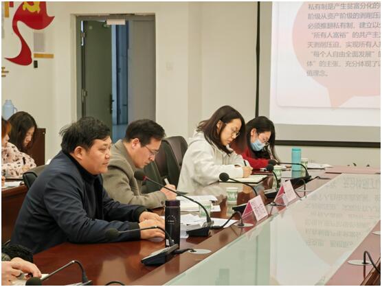 在最后一堂党课上,支部邀请了校党委委员、组织人事部部长张如宝为大家授课。张如宝从习近平新时代中国特色社会主义思想关于共同富裕的理论渊源以及对马克思主义共同富裕理论内涵的丰富、实现路径的拓展三个方面出发,深入解读习近平新时代中国特色社会主义思想对马克思主义共同富裕理论的丰富与拓展。他寄语我院青年学子,新时代的青年要有理想主义追求,要志存高远,要有初生牛犊不怕虎的胆量和勇气,要积极向优秀青年代表学习,在尽职尽责中成长成才,在劈波斩浪中开拓前进,在攻坚克难中创造业绩。
