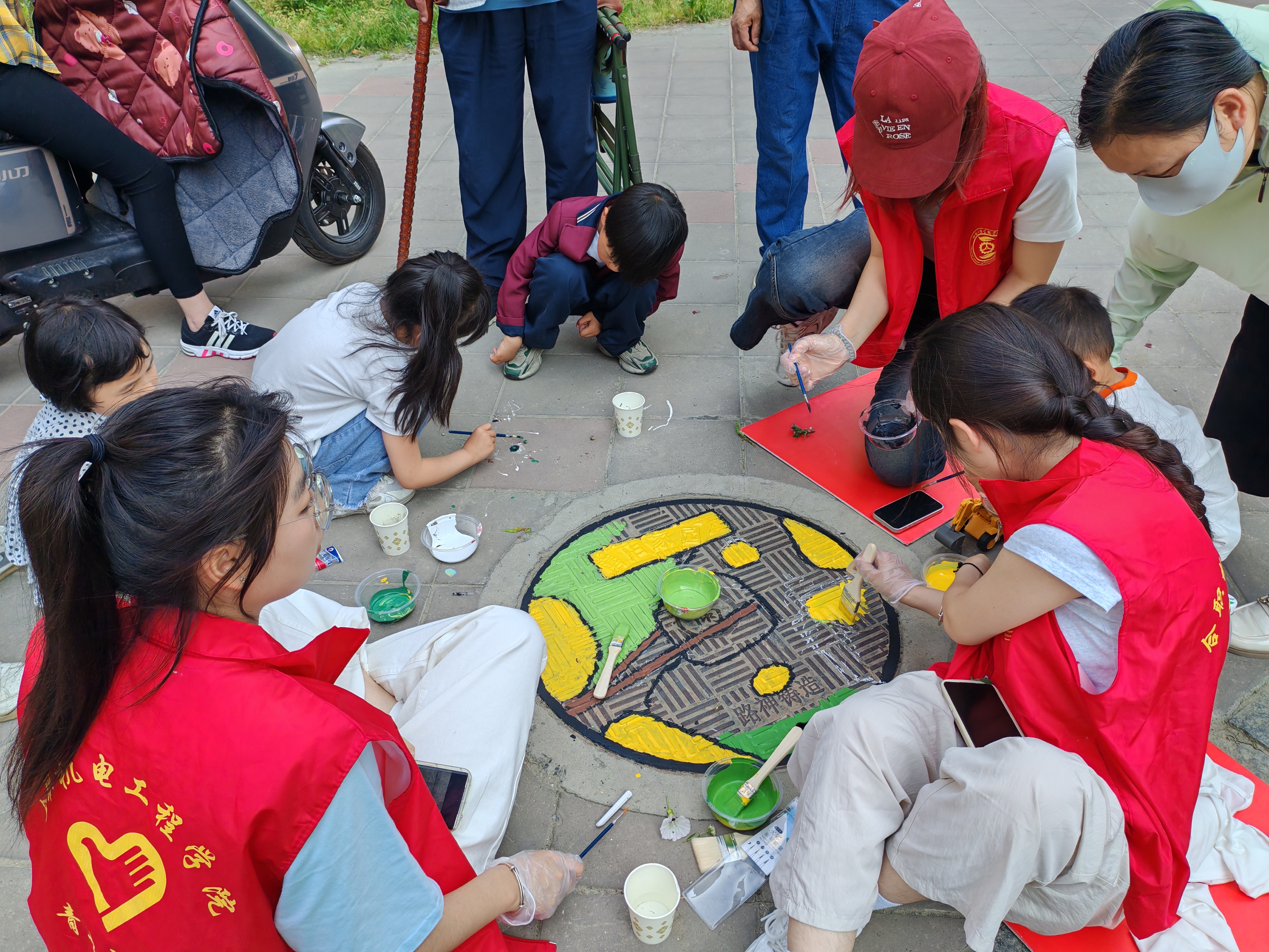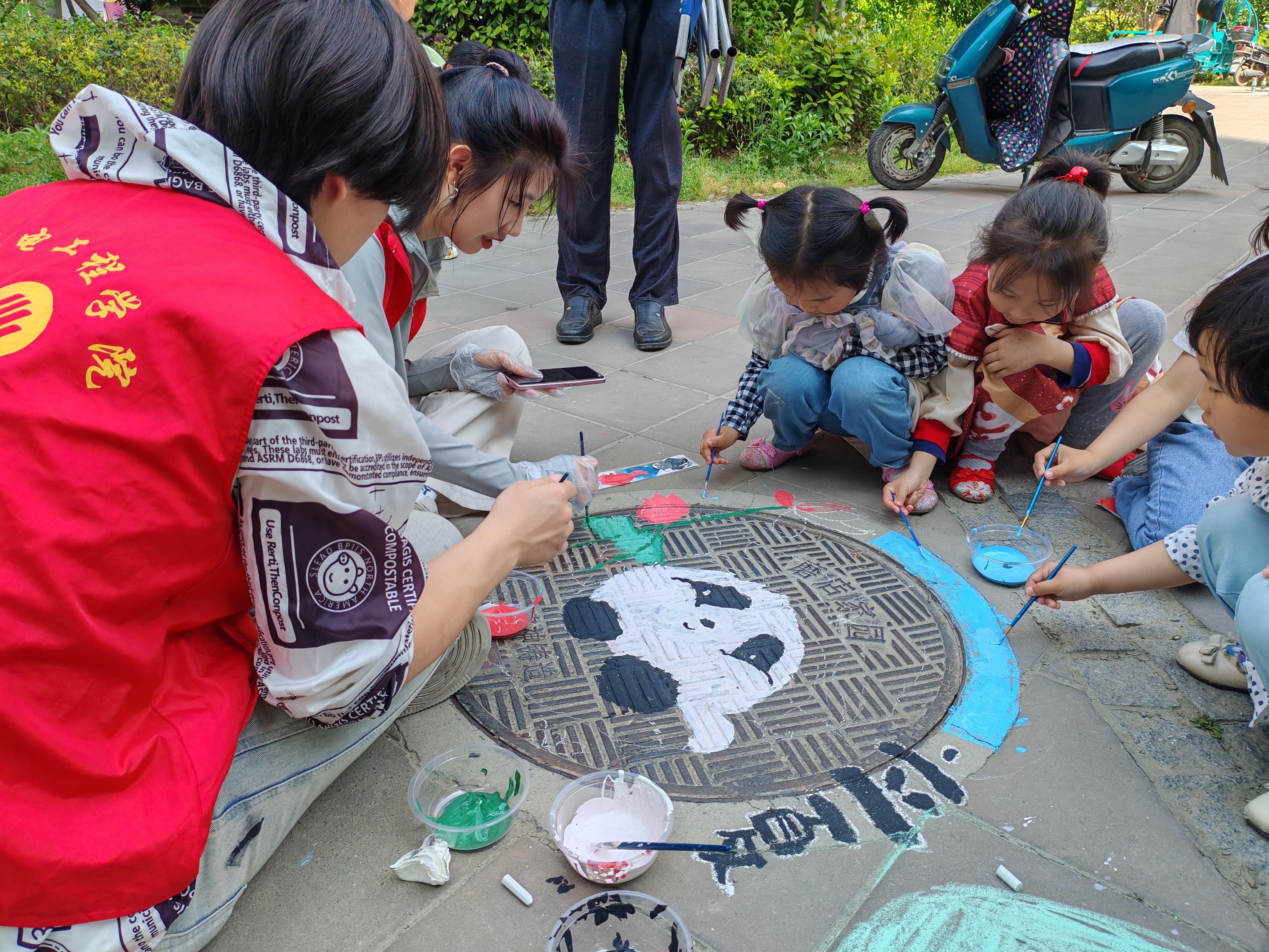 岁月轻歌,流转至四月,万物复苏,满眼绿意盎然。为营造美丽宜居的社区环境,发挥社区育人功能,4月27日下午,成人在线观看视频“小螺钉”志愿服务队来到蔡岗居委会同德苑小区,和社区工作人员一起举办了井盖彩绘活动。