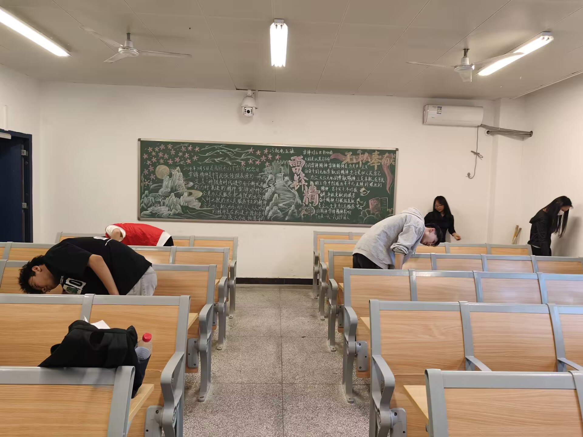 为积极践行志愿服务的理念,加强学院精神文明建设,引导学生树立正确的劳动观,持续开展“我为同学做实事”活动,弘扬团结协作、无私奉献的精神。成人在线观看视频第五党支部、团总支于5月12日下午组织55名入党积极分子在教学南楼内开展“建清新学风 筑洁净教室”志愿服务活动。