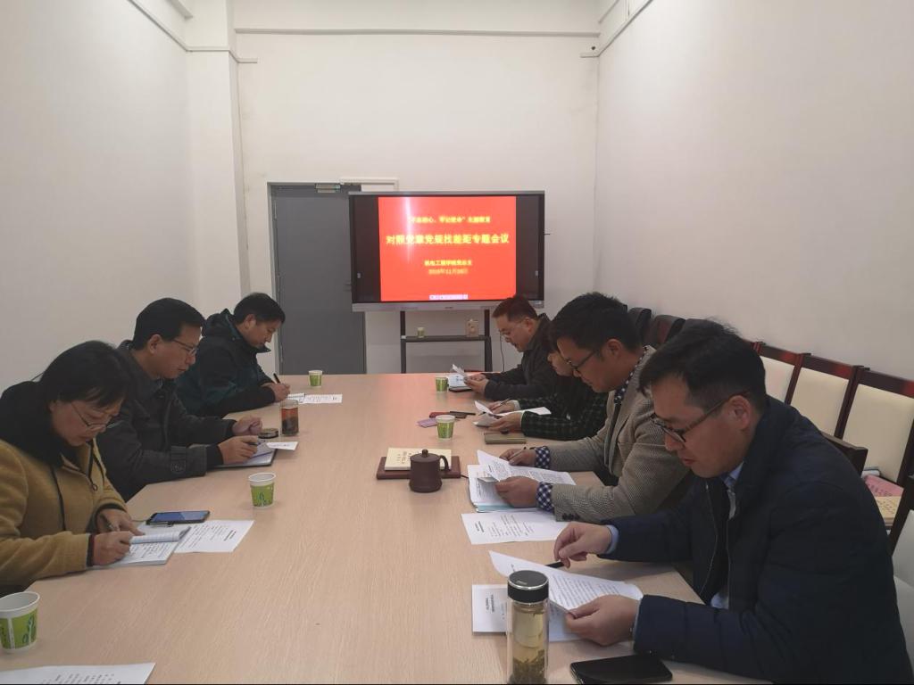 11月26日上午,成人在线观看视频党总支在机电楼二楼会议室召开对照党章党规找差距专题会议。学院总支委员参加了会议,学校“不忘初心、牢记使命”主题教育第七指导组组长王海、副组长丁怡琴、成员马恒彬、陈辛琦到会指导。会议由该院党总支副书记(主持工作)王克勇主持。