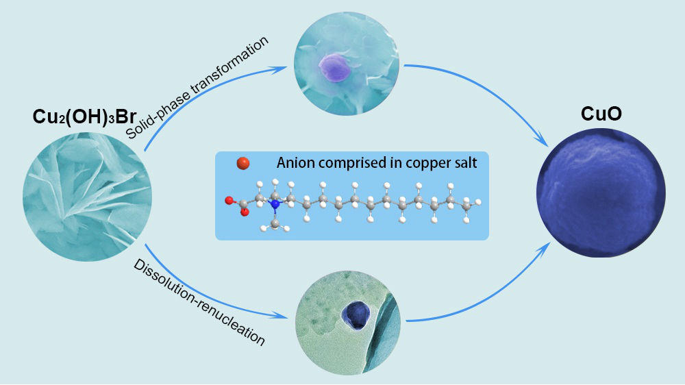 纳米材料特别是氧化物纳米材料对储能材料电极合成有着重要意义。日前我院博士后研究团队在氢氧化铜晶型转变为氧化铜材料方向上获得突破,所得成果以SCI论文(Stepwise Growth of CuO via Transformation of Cu2(OH)3Br Intermediate in Aqueous Solution of Long-Alkyl-Chain Copper Salt)在中科院晶体1区(2020年01月“去四唯”版)杂志CRYSTAL GROWTH & DESIGN(2020年5月刊)上发表。