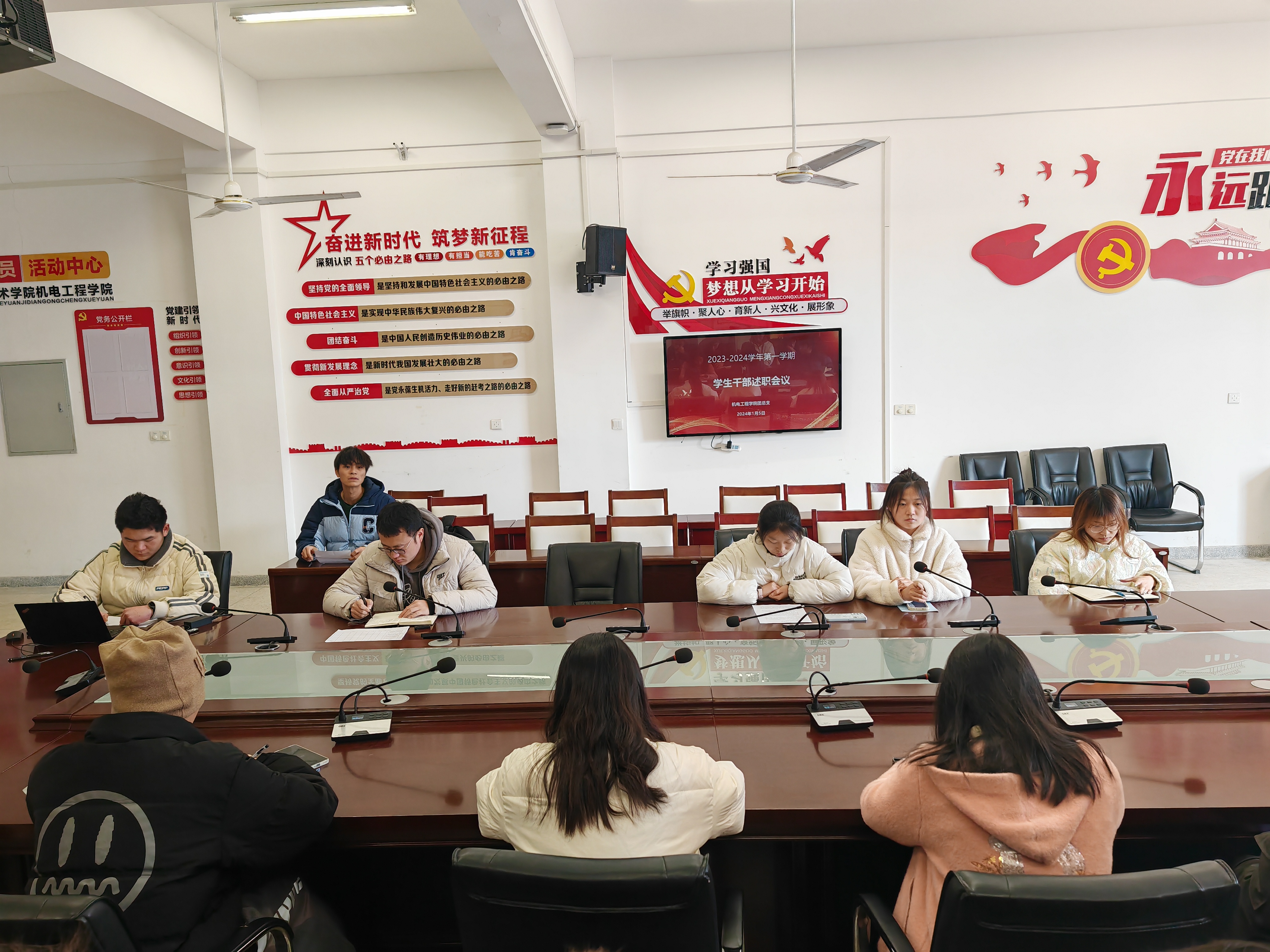为加强学生干部的使命感和责任感,总结反思团总支学生会工作,统筹未来工作安排,提升团总支学生会自我管理、自我服务、自我教育水平,1月5日下午,成人在线观看视频在机电楼二楼会议室举行2023-2024学年第一学期学生干部工作述职汇报会,学院团总支书记张开、学生会各部门负责同学等参加会议。