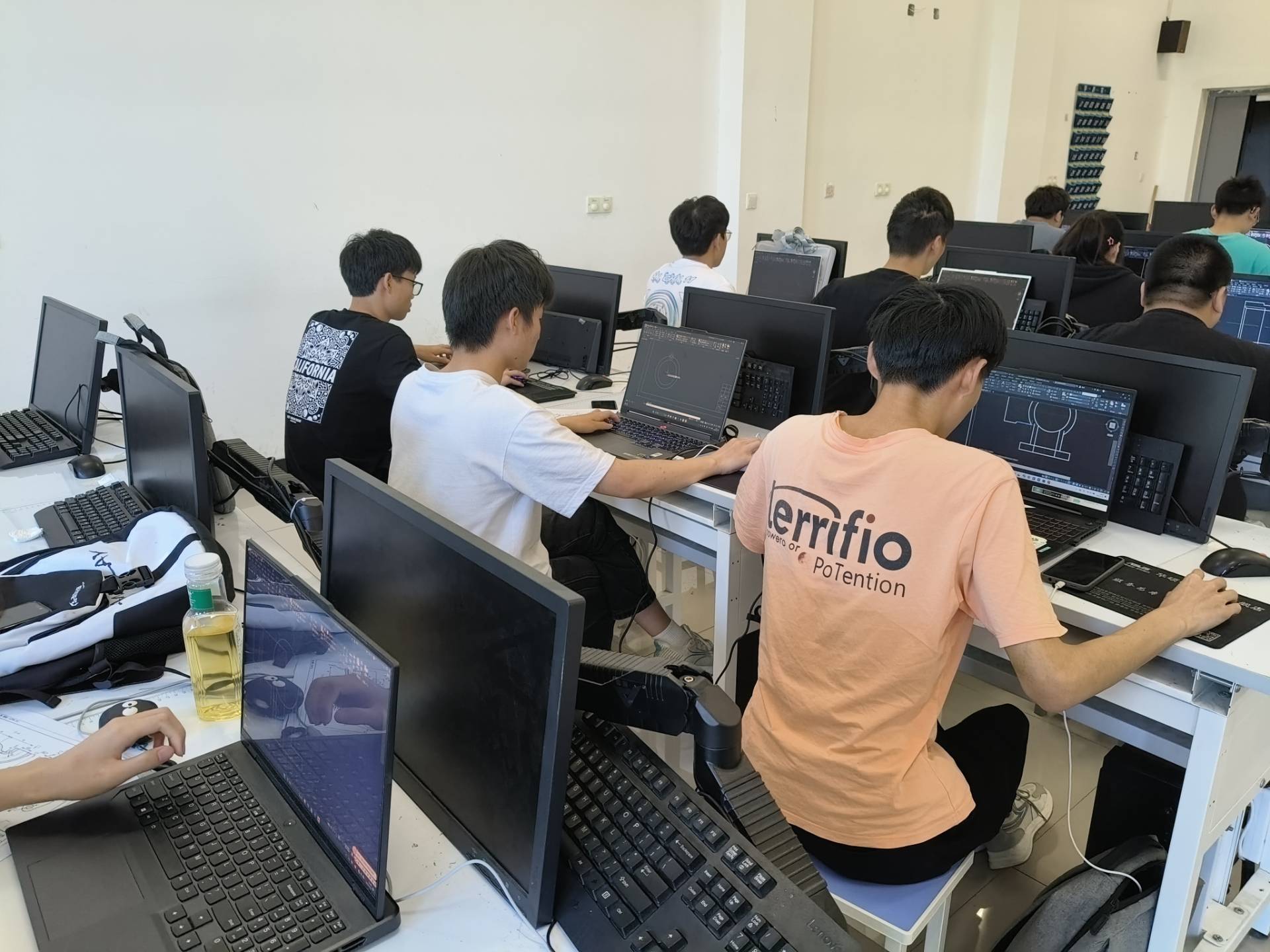 本次比赛分为CAD制图和PLC编程两个项目。赛前,志愿者们提前进行了充分的准备工作,如比赛场地的布置、比赛题目的设计、奖品的选购等,确保活动有序进行。经过前期各班级宣传,赛事吸引了30多名同学参加,大家希望借此机会展现自己的专业基础和竞技水平。