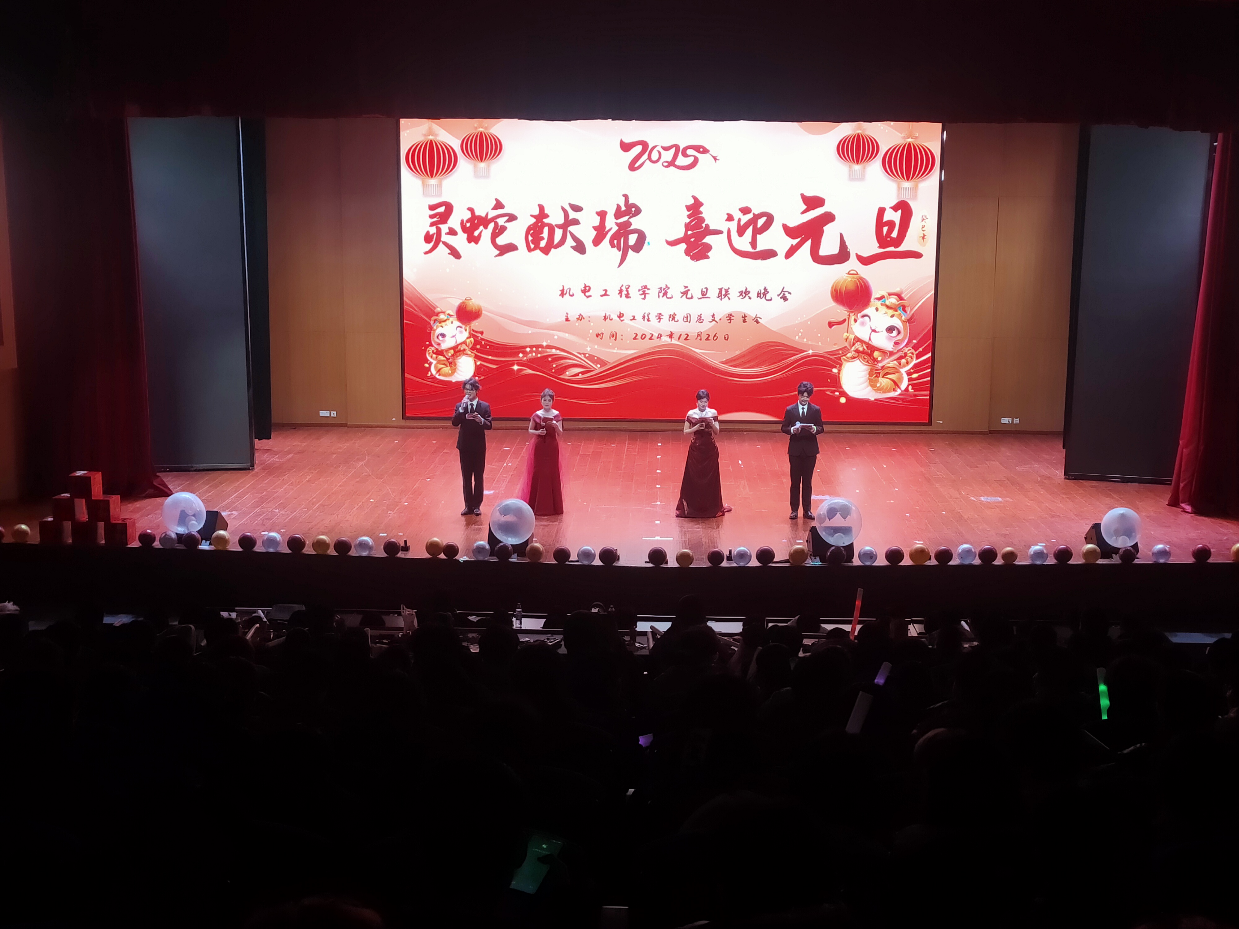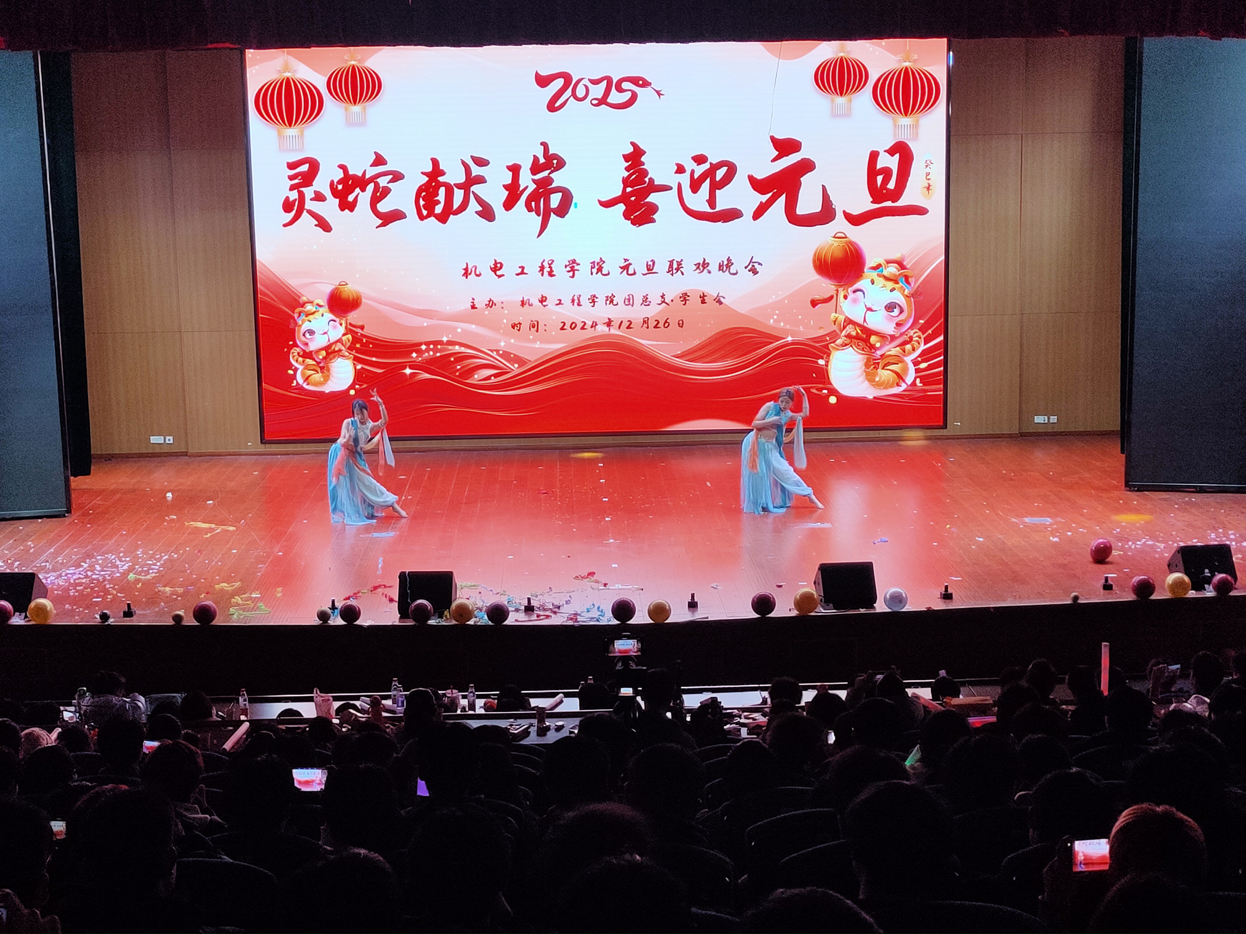 一元复始、万象更新。为弘扬中华优秀传统文化,营造文明和谐、喜庆祥和的新年气氛,充分展现青年学子风采,12月26日晚,成人在线观看视频在汇心湖校区大学生活动中心二楼报告厅举办“祥蛇献瑞 喜迎元旦”2025年元旦迎新晚会,师生们欢聚一堂,共同迎接新一年的到来。学院党政领导班子、全体专兼职辅导员、教师代表、学校和其他二级学院学生会代表以及400余名新生共同观看演出。