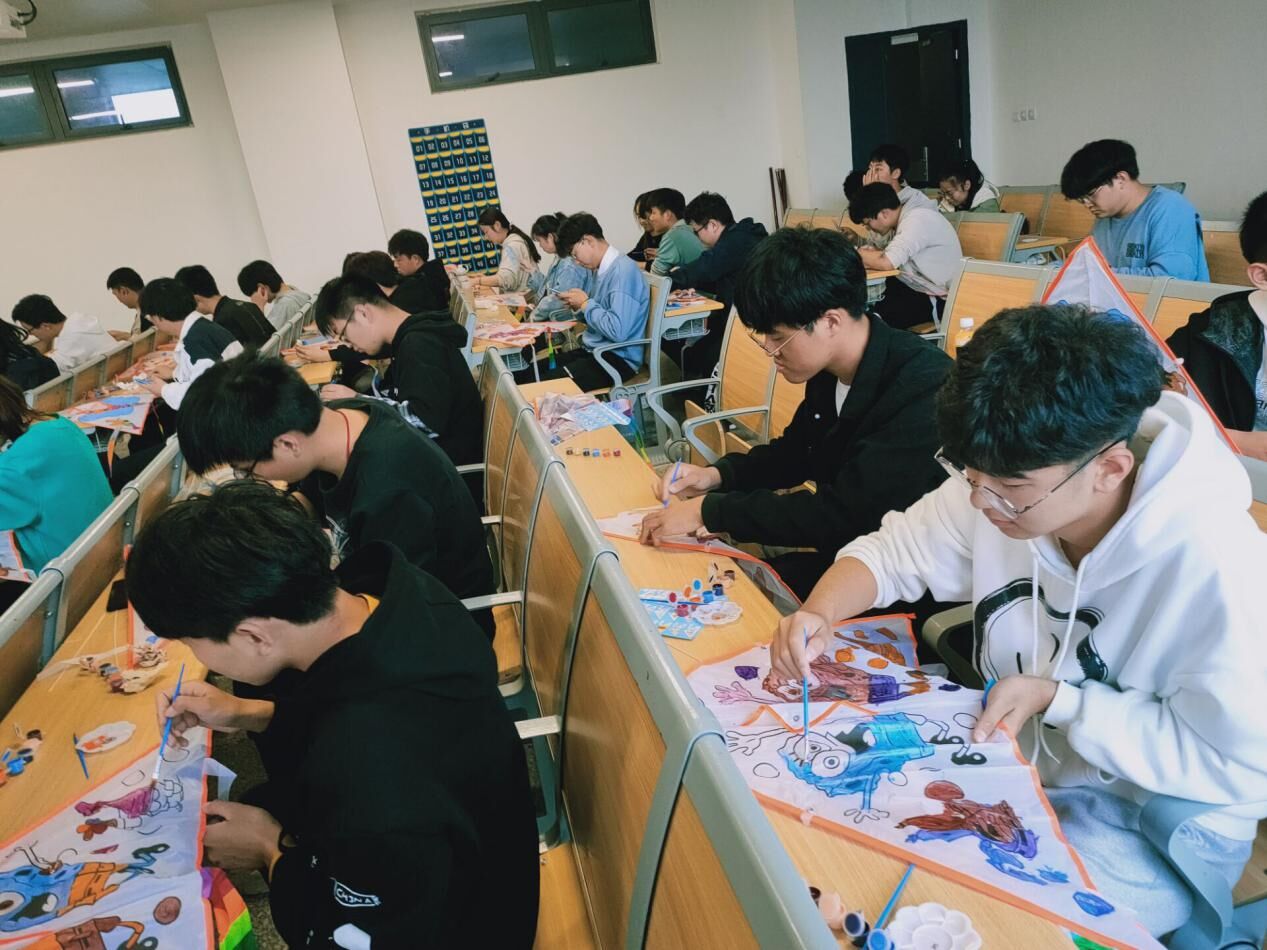 风筝在中国传统文化中有着特殊的寓意,人们通过风筝来表达对美好生活的向往和憧憬。本次活动分为风筝绘画、自由放飞两个环节。同学们先领取风筝材料包,把自己心目中的梦想绘制在风筝上。