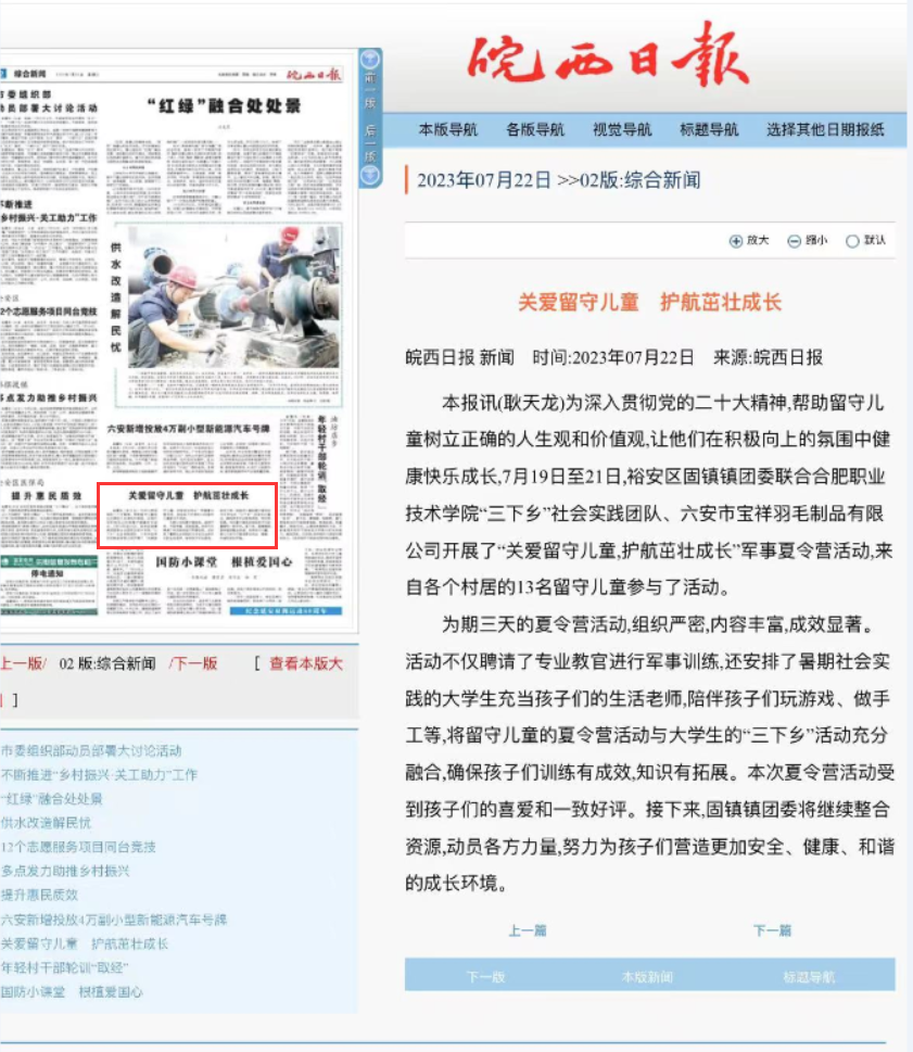 本次成人在线观看视频暑期社会实践成效显著,活动过程中受到皖西日报、裕安区共青团委等当地主流媒体的广泛关注和报道,引起社会良好的反响。团队成员们也受益匪浅,大家表示:这次实践旅程不仅是一场脚踏实地的“劳动课程”,也是一场提升自我的“人生课程”,更是一场学习贯彻习近平新时代中国特色社会主义思想和党的二十大精神的“必修课程”。