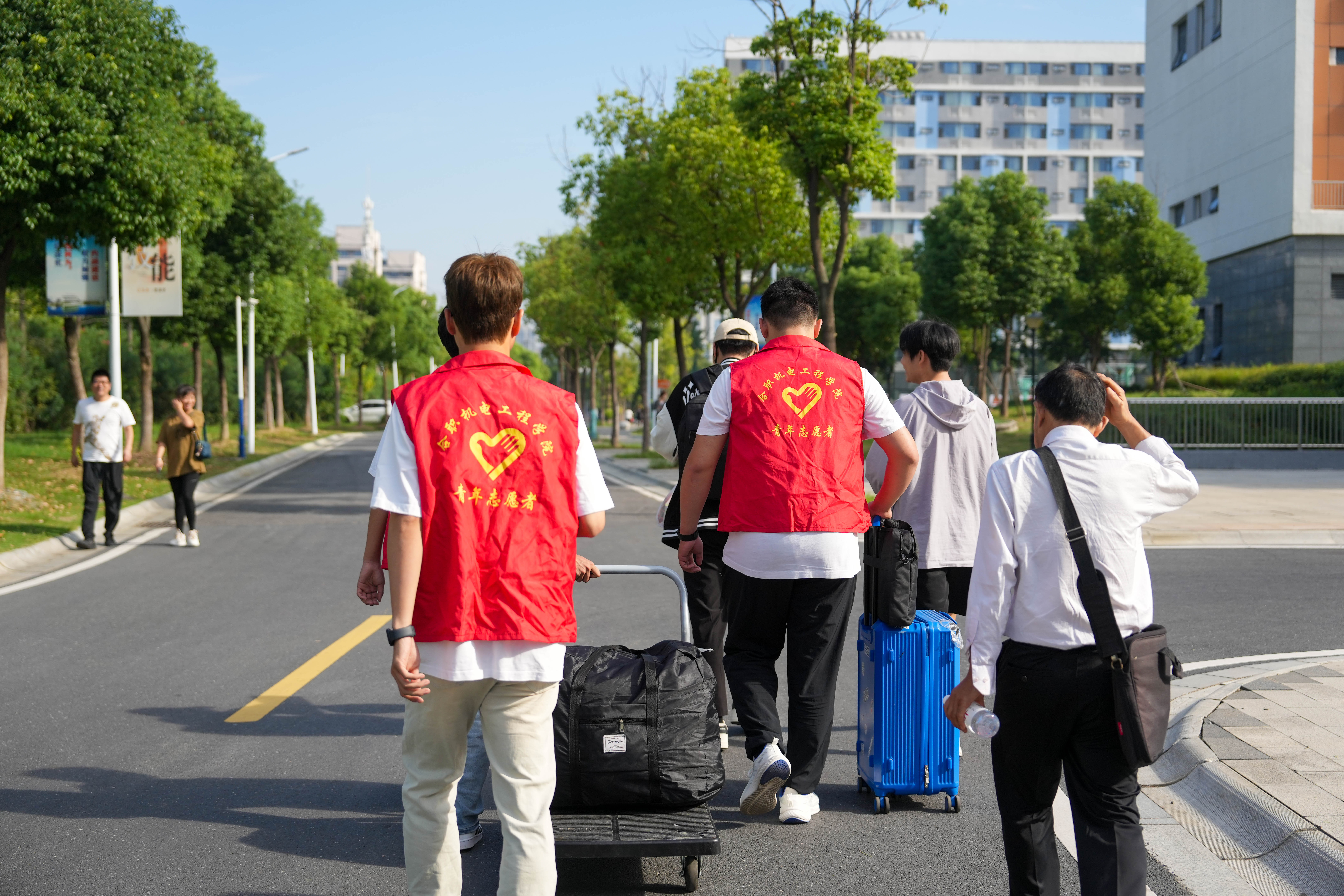 为全面保障此次迎新工作的顺利开展,学院精密组织、周密部署,以“高效、便捷、暖心”为宗旨,采取“一站式报到服务”,力求让每一位新生在开学报到时感受机电大家庭的温暖与热情。上午7点,志愿者各组便到达预备位置,大家身着志愿者服装,怀着热情协助新生搬运行李,耐心解答新生疑问,积极介绍校园环境,用良好的精神面貌展现机电学子的澎湃热情与卓越风采。