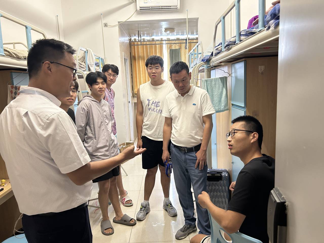 随后,学校、学院领导和老师一行走访新生宿舍,看望已报到入住的部分同学并与同学们亲切交谈。“欢迎你们来到合肥职业技术学院!”学生处处长王克勇、学院副书记丁迎春向新生表示祝贺,勉励同学们要感恩父母、牢记校训精神,脚踏实地、刻苦学习,早日实现远大理想。