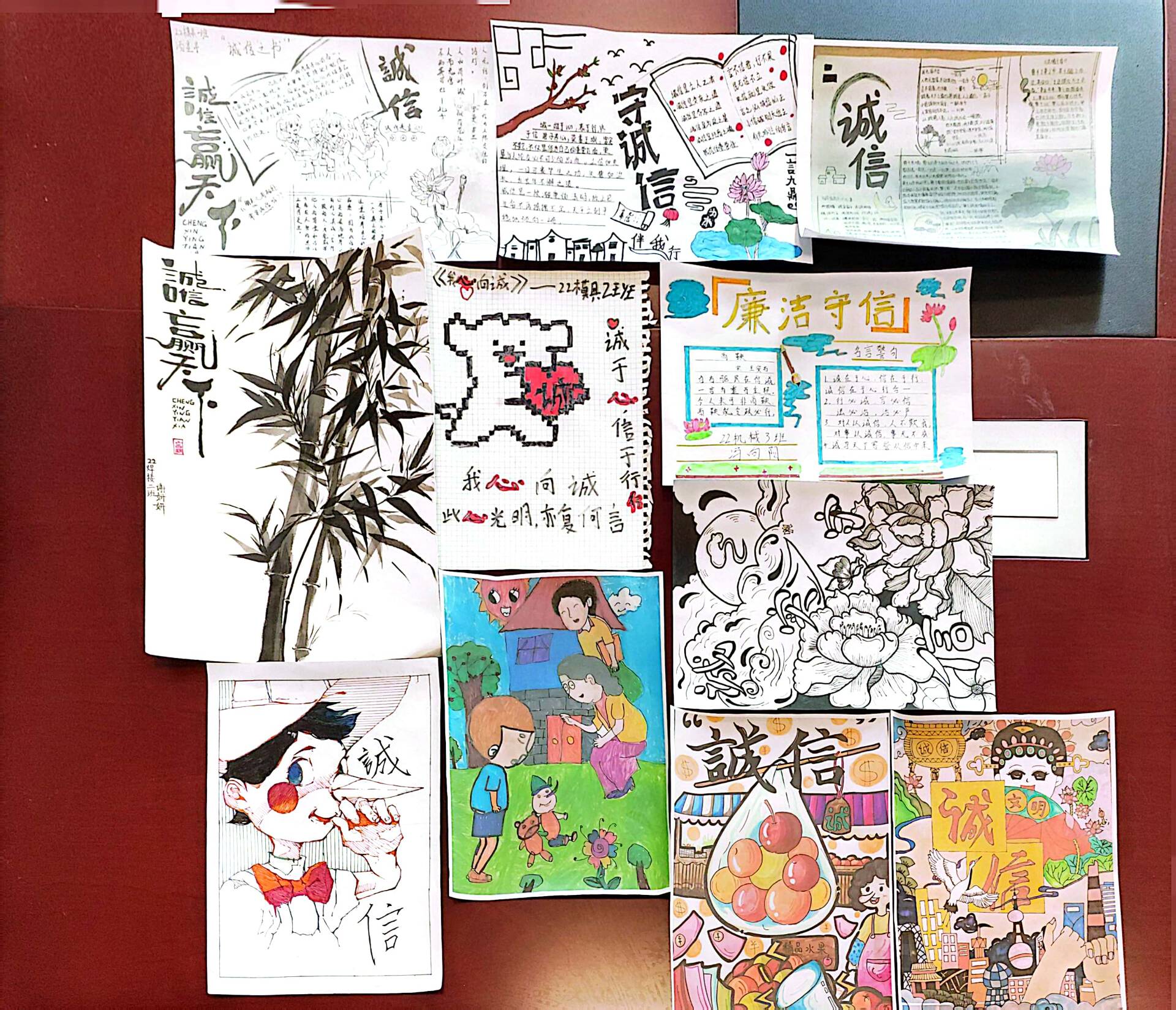 诚信教育主题月期间,学院围绕“诚实守信,防诈骗”主题征集作品。活动启动后,同学们踊跃参与,参赛学生积极制作相关的绘画、海报等原创作品,一共评出11幅优秀作品在学院宣传栏供大家欣赏。